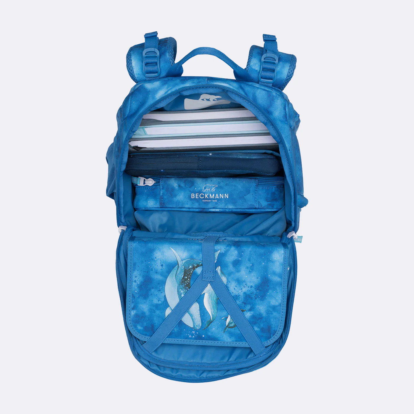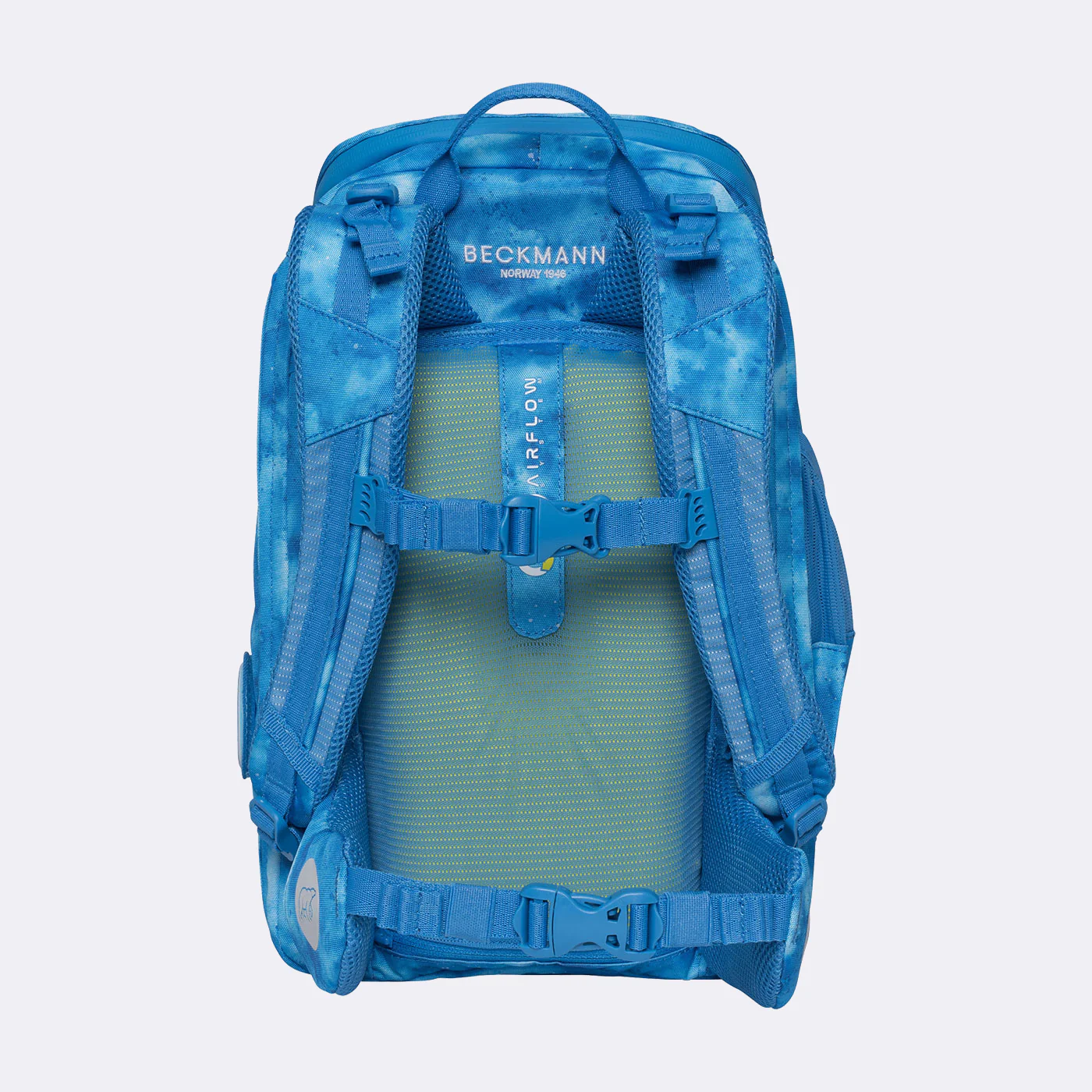 Beckmann Norway Active Air FLX 6-teiliges SetActive Air FLX mit dem preisgekrönten ‚AIR FLOW‘ Luftkissen von Beckmann! Das innovative Rückensystem basiert auf einer Kombination aus Luft und Schaumpolsterung. Der Vorteil von Luft ist, dass die Unterstützung des Rückens dynamisch erfolgt und sich ständig an deine Bewegungen anpasst. Dadurch werden die Hohlräume zwischen Rücken und Ranzen immer gefüllt, was zu noch mehr Halt und Stabilität führt.FLX – denn nicht alle Tage sind gleich! Durch das FLX-System kann das Volumen des Schulranzens bei Bedarf um ca. 5 Liter erweitert werden.Der Ranzen kommt mit einem integrierten Regenschutz in der Seitentasche, einer separaten wasserdichten Vordertasche für Brotdose und Trinkflasche und vielen verschiedenen Buttons, die an mehreren Stellen am Schulranzen befestigt werden können. Active Air FLX ist mit einer schrägen Öffnung ausgestattet, die eine gute Übersicht ermöglicht.Alle Designs haben außerdem eine wendbare Vordertasche, mit der der Ranzen sein Aussehen in Sekundenschnelle ändern kann. Kinder haben unterschiedliche Wünsche und die ändern sich im Laufe der ersten Schuljahre. Wir möchten diesen Wünschen gerecht werden. So kann der Ranzen bei Bedarf auch neutraler gestaltet werden!Gewinner des Innovationspreises für Ergonomie 2021, IGR (Institut für Gesundheit und Ergonomie)!100% des Stoffes des Active Air FLX wurde aus 43 recycelten Plastikflaschen (rPET Flaschen) hergestellt.Das Schulranzen Set besteht aus: