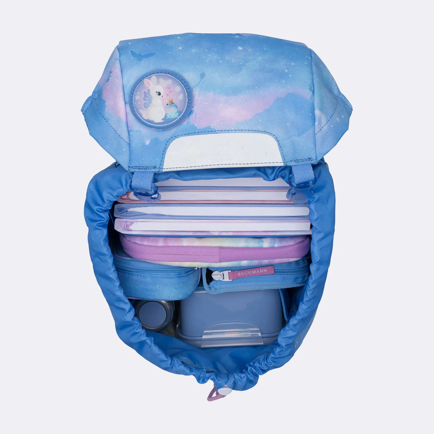 Das perfekte Schulrucksackset für den Schulanfänger!Unser Ziel ist es, dass das angehende Schulkind ein magisches Gefühl bekommt, wenn der erste Schulrucksack gekauft wird. Neben Farben, Mustern und Illustrationen, haben die Rucksäcke auch einen erstklassigen Tragekomfort mit Polsterung, verstellbaren Riemen und einer optimierten Gewichtsverteilung. Unser Grundschulrucksack Classic ist mit einem integrierten Regenüberzug im Deckelfach, einem praktischen wasserdichten Innenfach für die Brotdose sowie vielen unterschiedlichen Buttons ausgestattet, die an mehreren Stellen am Rucksack angebracht werden können.Der Classic bietet Platz für alles, was man für den Schulalltag braucht und ist so gestaltet, dass er das Gewicht dicht am Rücken hält. All unsere Schulrucksäcke werden mit Experten entwickelt und vielfach auf ihre ergonomischen Eigenschaften getestet. Somit fördern unsere Ranzen die Rückengesundheit und reduzieren Belastungen.All unsere Grundschulrucksäcke haben außerdem eine wendbare Vordertasche (außer Classic, Camo Rex), mit der der Rucksack sein Aussehen in Sekundenschnelle ändern kann. Kinder haben unterschiedliche Wünsche und die ändern sich im Laufe der ersten Schuljahre. Wir möchten diesen Wünschen gerecht werden. So kann der Rucksack auf Wunsch auch neutraler gestaltet werden!Gewinner des Innovationspreises für Ergonomie 2019 (IGR – Institut für Gesundheit und Ergonomie)!Das Set beinhaltet alles was man für die Einschulung und den Schulanfang braucht: