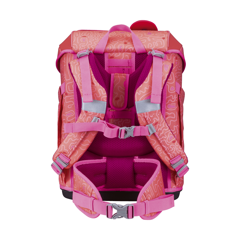 Sicherheit ganz leicht gemacht: Der ErgoFlex Tiny Exklusiv Superflash strahlt besonders stark, wenn Licht auf seine extragroßen retroreflektierenden Flächen trifft und macht ABC-Schützen in der Dunkelheit unübersehbar. Er fällt im Straßenverkehr einfach immer auf und sorgt für einen sicheren Schulweg. Zudem ist er stabil, schlank und mit flachem Deckel – das alles mit nur ca. 900 Gramm. Mit den tierisch coolen Coral Reef Wechselbuttons und dem Anhänger können Kinder den Ranzen individuell gestalten. Dank des cleveren Tragegurtsystems wächst er mit, entlastet den Kinderrücken und ist super bequem. Durch zwei herausnehmbare Extra-Polster im Rücken, passt sich der Ranzen noch besser an und ist eine wichtige Stütze für die Wirbelsäule. Das Beste aber ist: Der ErgoFlex Tiny Exklusiv Superflash Coral Reef Schulranzen kommt im praktischen Komplett-Set inklusive 2 Wechselbuttons und 1 Anhänger, Heftebox, Sportbeutel, Faulenzermäppchen und einem befüllten Schüleretui (Staedtler-Qualitätsbuntstifte). So macht Schule Spaß!Maße:ca. 30 x 38 x 23 cm