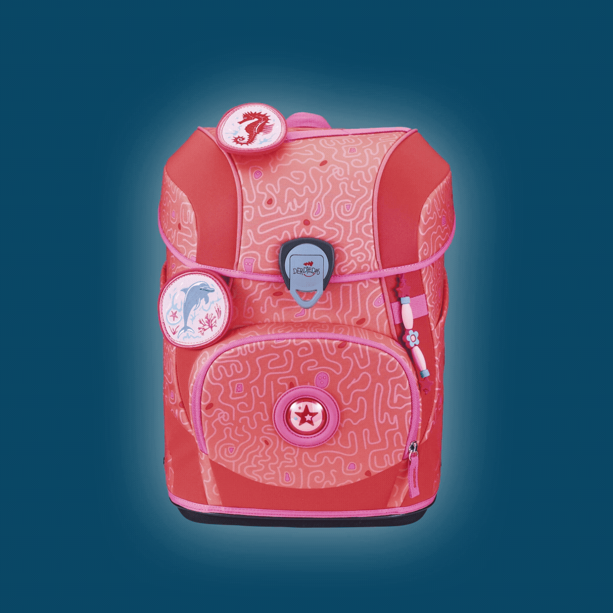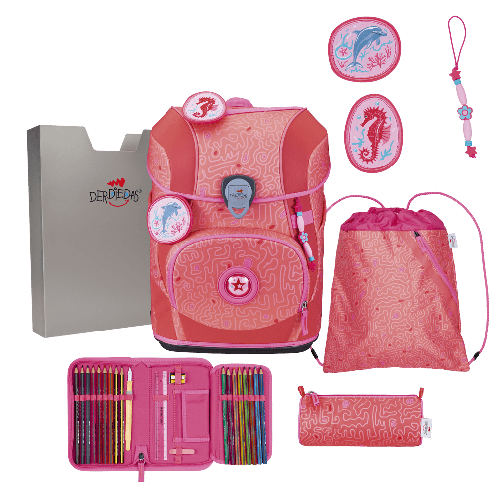 Schulranzen-Set ErgoFlex Tiny Exklusiv Superflash Coral Reef: Mit Seepferdchen und Delfinen abtauchen