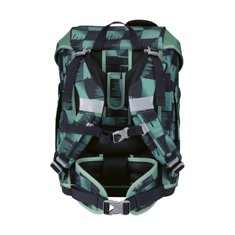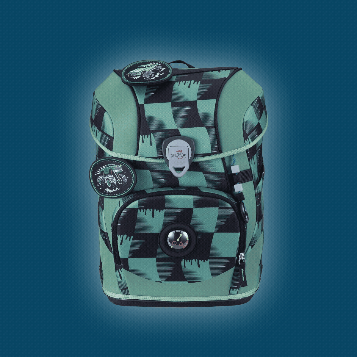 Sicherheit ganz leicht gemacht: Der ErgoFlex Tiny Exklusiv Superflash strahlt besonders stark, wenn Licht auf seine extragroßen retroreflektierenden Flächen trifft und macht ABC-Schützen in der Dunkelheit unübersehbar. Er fällt im Straßenverkehr einfach immer auf und sorgt für einen sicheren Schulweg. Zudem ist er stabil, schlank und mit flachem Deckel – das alles mit nur ca. 900 Gramm. Mit den coolen Power-Wechselbuttons und dem Anhänger können Kinder den Ranzen individuell gestalten. Dank des cleveren Tragegurtsystems wächst er mit, entlastet den Kinderrücken und ist super bequem. Durch zwei herausnehmbare Extra-Polster im Rücken, passt sich der Ranzen noch besser an und ist eine wichtige Stütze für die Wirbelsäule. Das Beste aber ist: Der ErgoFlex Tiny Exklusiv Superflash Schulranzen Super Truck kommt im praktischen Komplett-Set inklusive 2 Wechselbuttons und 1 Anhänger, Heftebox, Sportbeutel, Faulenzermäppchen und einem befüllten Schüleretui (Staedtler-Qualitätsbuntstifte). So macht Schule Spaß!Maße:ca. 30 x 38 x 23 cm