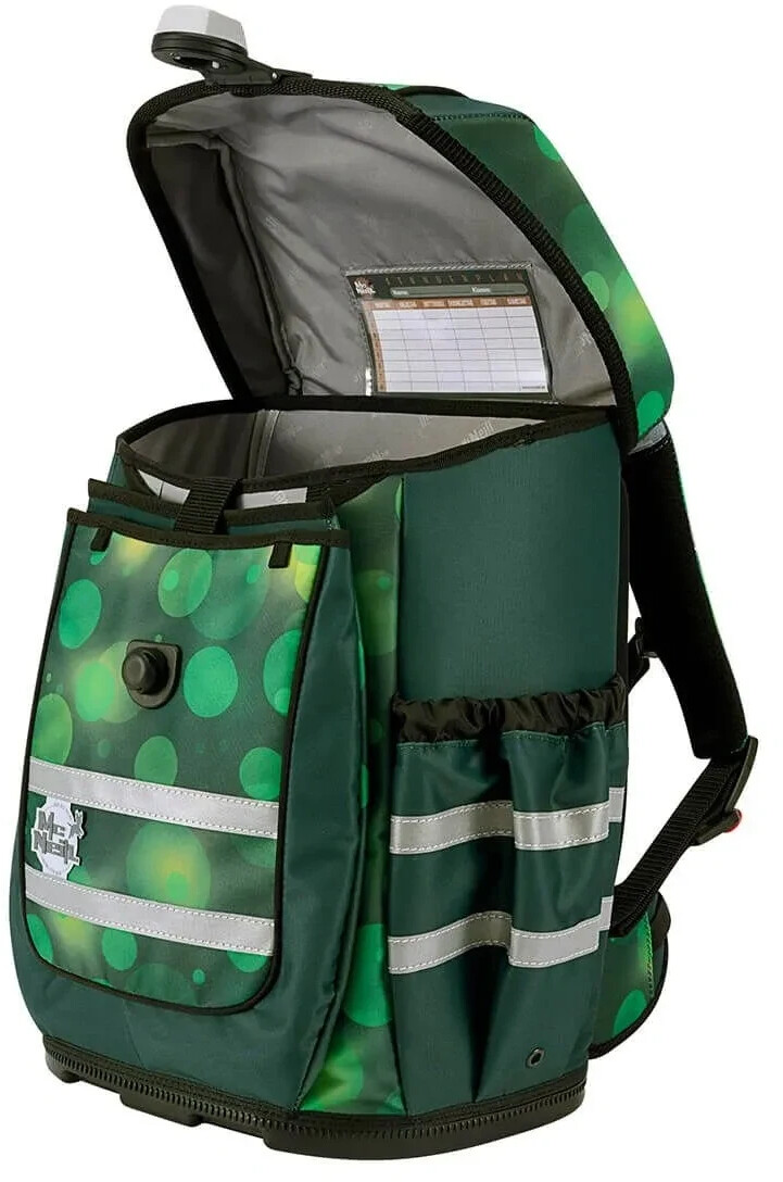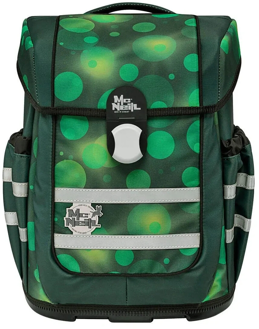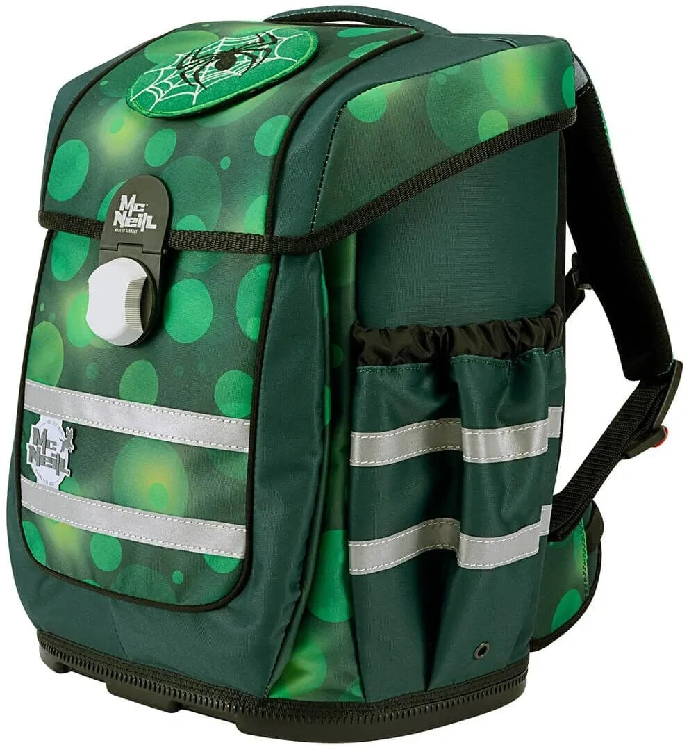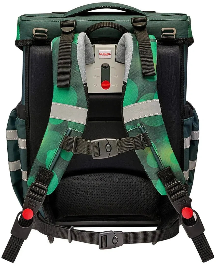 Aus recyceltem Ocean-Plastik höhenverstellbares SmartFlex Tragesystem Turnbeutelbefestigung am Ranzen Made in Germany ca. 60% weniger CO2-Verbrauch als vergleichbare Schulranzen Das Schulranzen Set 5-tlg. McOcean Forest – Der Nachhaltige von McNeill McOcean – der erste Schulranzen aus recyceltem Ocean-Plastik. Der Stoff besteht aus SEAQUAL-Garn, dieses Garn wird aus Plastik hergestellt, welches aus dem Ocean gefischt wird. Das Innenfutter wird aus recycelten PET-Flaschen gefertigt und die Anhänger aus alten Fischernetzen. Dazu kommt, dass McNeill in Deutschland fertigt. So wird pro Ranzen ca. 4kg CO2 eingespart. Wie bei allen Modellen überzeugt auch der McOcean mit dem innovativen Smart-Flex Tragesystem. Durch das höhenverstellbare System kann der Schulranzen an den Körperbau des Kindes angepasst werden und wächst mit. Das hochwertige Rückenpolster ist ergonomisch geformt und besitzt, für ein leichtes und gutes Tragegefühl, einen Lendenwirbelschutz. Die Schultergurte sind weich gepolstert und bieten einen hohen Tragekomfort für Ihr Kind. Der höhenverstellbare Brustgurt und der abnehmbare Beckengurt sorgen für zusätzliche Entlastung der Schultern. Auf der Frontseite besitzt der Schulranzen ein leicht bedienbares und stylisches Magnetschloss. Die McNeill Doppelstreifen bieten zusätzliche Sicherheit in der Dunkelheit. Sie sind aus retroreflektierendem Material und werfen auftreffendes Licht zurück. So ist Ihr Kind im Straßenverkehr besser sichtbar. Vor Feuchtigkeit und Schmutz ist der McNeill McOcean durch die stabile Bodenplatte geschützt. Durch die durchdachte Innenaufteilung behält Ihr Kind immer den Überblick. Das hochwertige Magnetschloss lässt sich kinderleicht öffnen und verschließt nahezu von alleine. Es ist perfekt für Kinder geeignet. An den Seiten verfügt der McOcean Forest über zwei Seitentaschen mit Gummizug. Der große Motivmagnet auf dem Überschlag ist abnehmbar und so verwandelt sich der MCOCEAN im Handumdrehen in einen weniger verspielten Ranzen.Gewicht: 1,15Kg, Volumen: 20l
