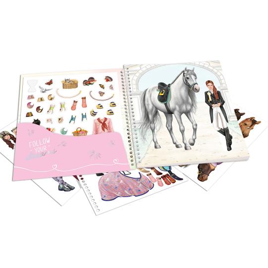 Superschöne Reit-Outfits und alles, was das Pferdeherz begehrt: Im Sticker- und Malbuch Dress Me Up von Miss Melody kann man mit 11 Stickerbogen auf 24 Seiten tolle Looks für Reiterinnen und ihre Huf-Freunde zusammenstellen.