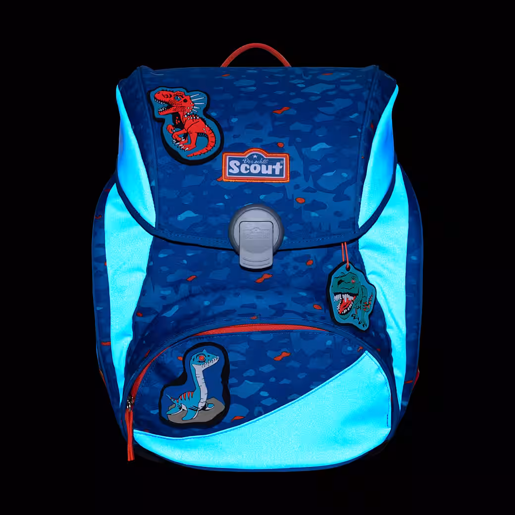 Scout Alpha Exklusiv Superflash Blue Dino Schulrucksack