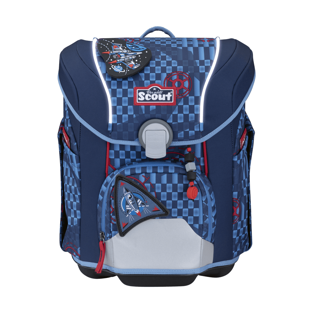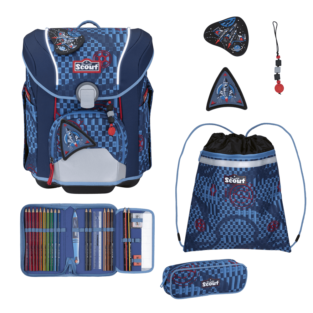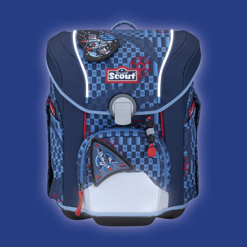 So kommen kleine Space-Fans sicher zur Schule: mit dem leichten Schulranzen Scout Micro Exklusiv Space Explorer. Mit seinen retroreflektierenden Flächen und blinkenden LED-Lichtleitern sorgt er für besonders gute Sichtbarkeit. Zudem sitzt er ergonomisch, hat einen festen Korpus und ist mit seiner abgerundeten Form und abgeschrägtem Deckel ideal für kleine, zierliche Kinder. Das Beste aber: Sportbeutel, Federmäppchen mit Staedtler Qualitätsbuntstiften, Schlamperetui, 2 Funny Snaps Move und 1 Anhänger sowie 3 AA Batterien sind inklusive. Das (Weltraum-)Abenteuer kann kommen!