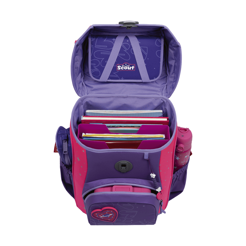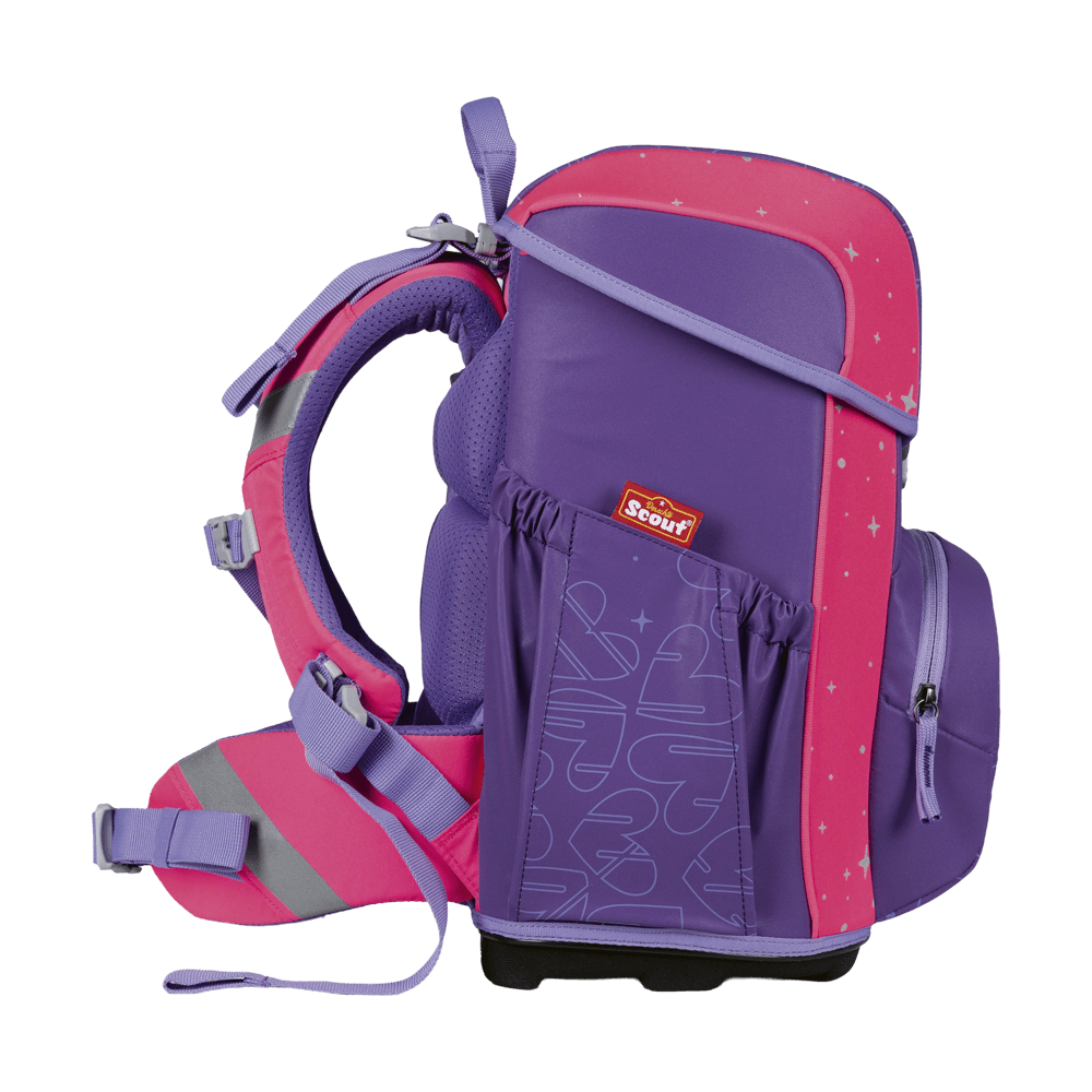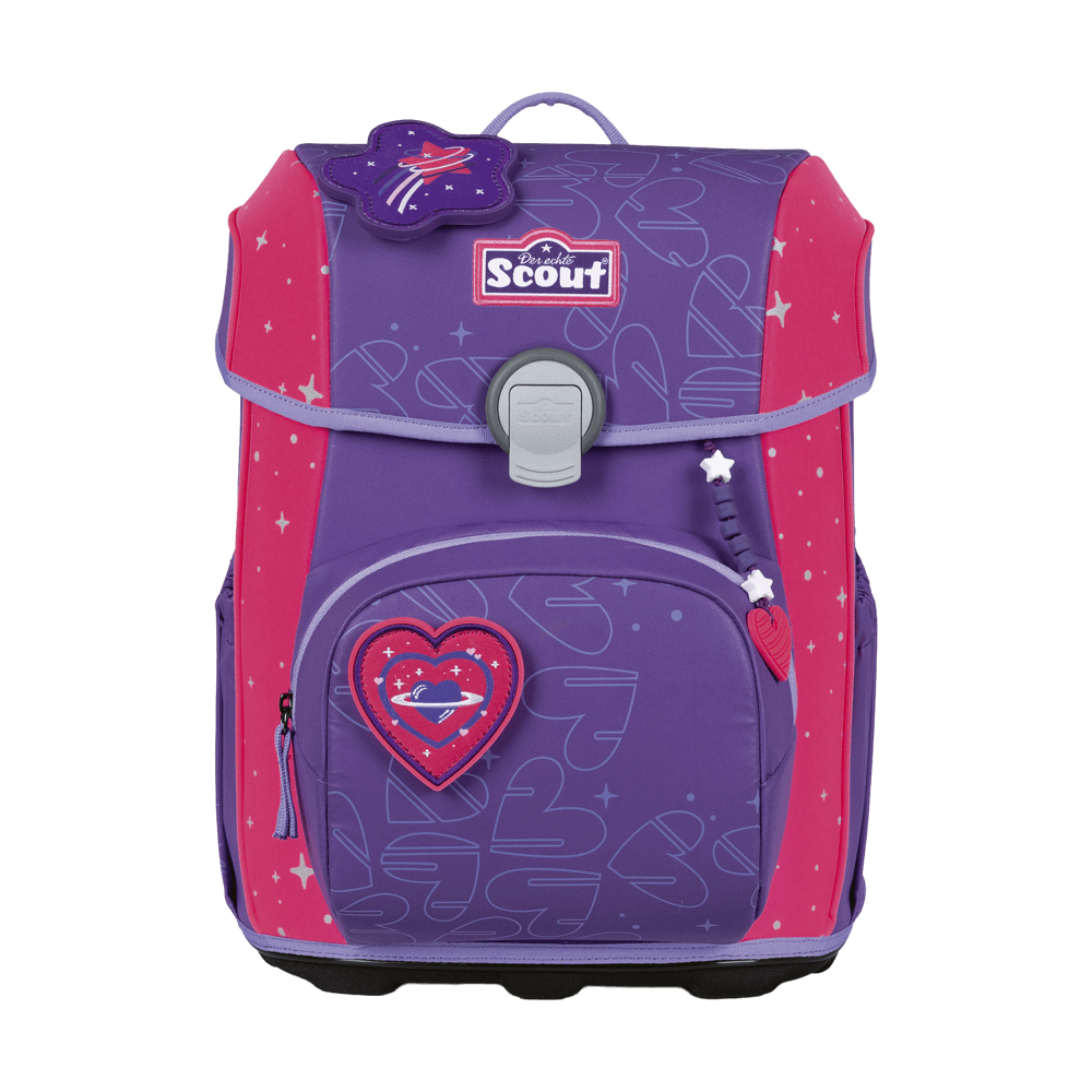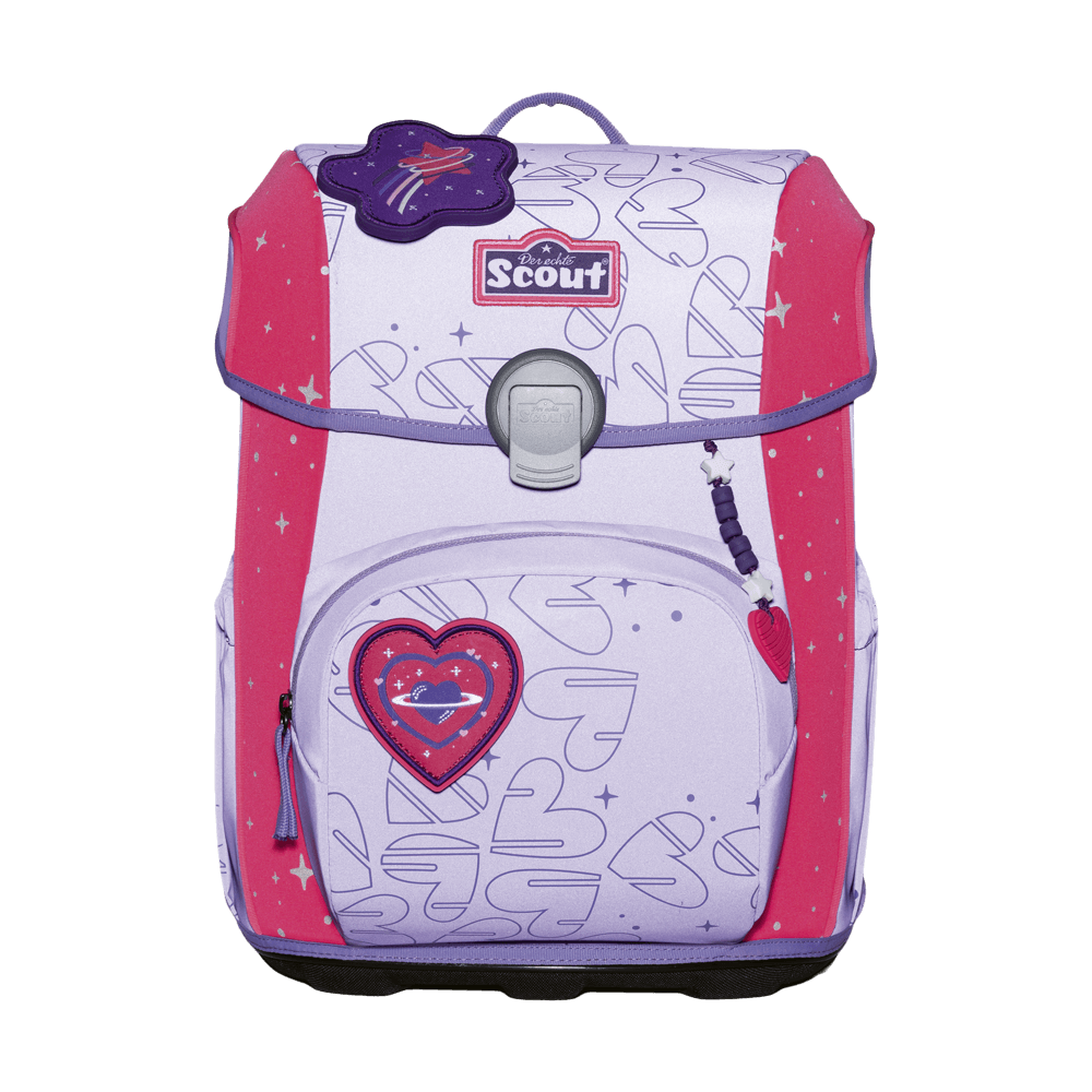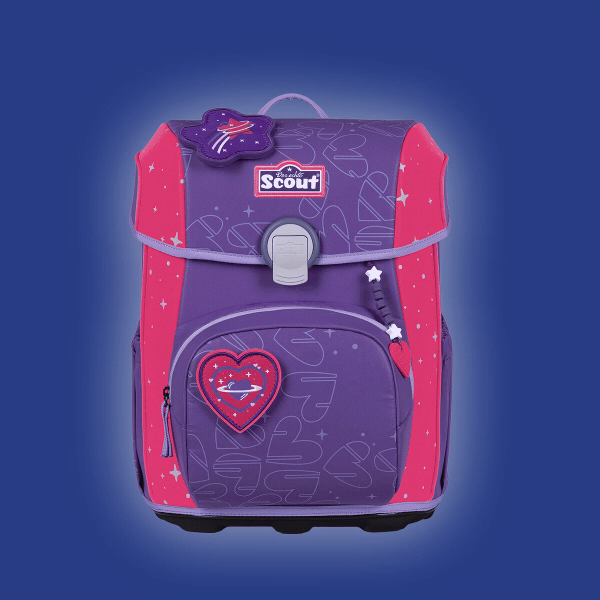 Da schlagen alle Herzen höher: mit unserem schlanken Schulranzen Scout Neo Exklusiv Superflash Extreme Heartbeat! Durch seine riesigen Reflexflächen strahlt der Ranzen besonders stark, wenn er im Dunkeln, z. B. von Autoscheinwerfern, angeleuchtet wird. So sind Kinder nicht zu übersehen. Zudem sitzt er ergonomisch und bietet beste Rundumsicht dank flachem Deckel. Das Beste aber: Sportbeutel, Federmäppchen mit Staedtler Qualitätsbuntstiften, Schlamperetui, 2 süße Funny Snaps Move und 1 Herzchen-Anhänger sind inklusive.