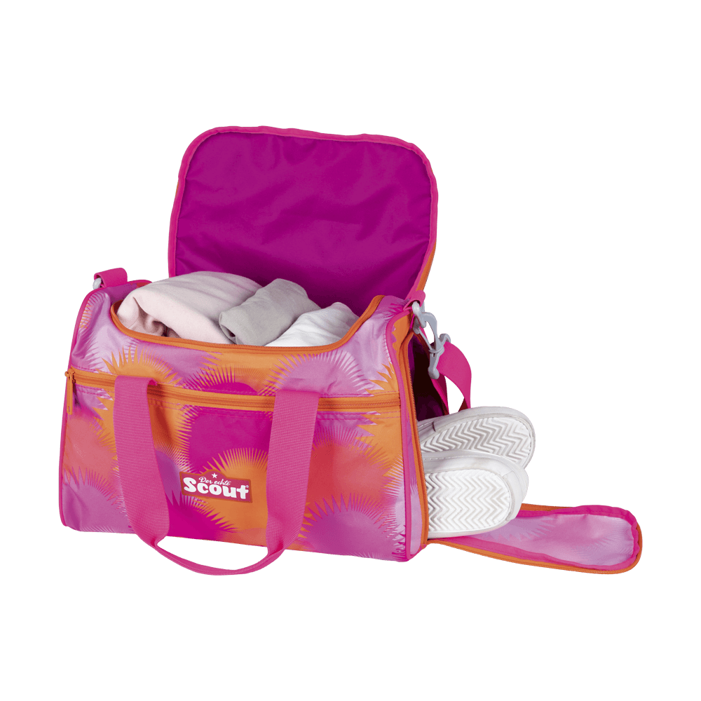 Die Scout Sporttasche mit praktischer Doppel-Reißverschluss-Öffnung ist nicht nur der perfekte Begleiter für Sport und Freizeit, sondern passt auch noch genau zum Florida Sunset Schulranzen! Neben einem verstellbaren Umhängegurt und 2 Tragegriffen verfügt sie außerdem über eine Reißverschluss-Vortasche sowie ein cleveres Nassfach und bietet damit viel Platz für Schuhe, Sportkleidung oder Schwimmsachen.