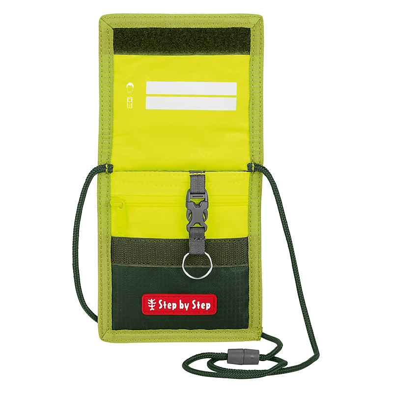 Step by Step Brustbeutel, perfekt für Geld und Busfahrkarte. – alles in einem Beutel: Fahrkarte, Geld, Schülerausweis, etc. – Brustbeutel mit Sicherheitsverschluss am Umhängeband – aufklappbare Flap mit Klettverschluss – innen viel Platz für Geldscheine, Kleingeld, Schlüssel etc. – mit Reißverschluss verschließbares Kleingeldfach – integrierte Befestigung für abnehmbaren Schlüsselring – Fensterfach für Fahrschein auf der Rückseite – Motiv passend zum jeweiligen Schulranzen-Design – die Textilien bestehen zu 100% aus recycelten PET-Flaschen – 100% PFC-freie und bluesign-zertifizierte Beschichtung