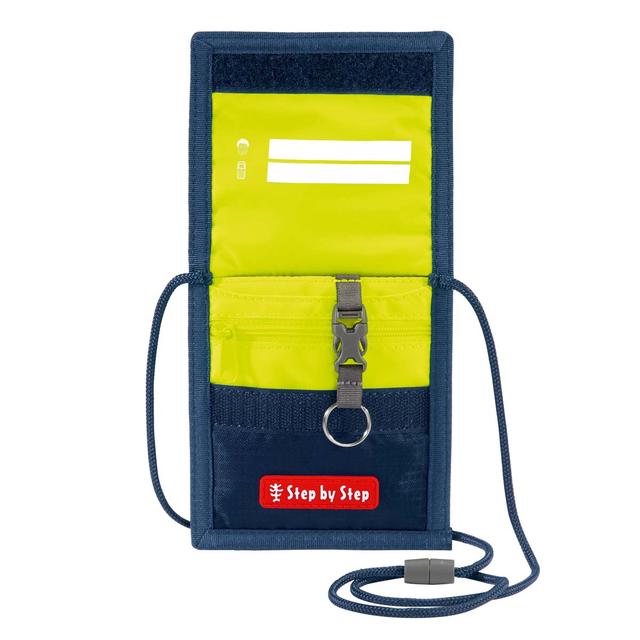 Step by Step Brustbeutel, perfekt für Geld und Busfahrkarte. – alles in einem Beutel: Fahrkarte, Geld, Schülerausweis, etc. – Brustbeutel mit Sicherheitsverschluss am Umhängeband – aufklappbare Flap mit Klettverschluss – innen viel Platz für Geldscheine, Kleingeld, Schlüssel etc. – mit Reißverschluss verschließbares Kleingeldfach – integrierte Befestigung für abnehmbaren Schlüsselring – Fensterfach für Fahrschein auf der Rückseite – Motiv passend zum jeweiligen Schulranzen-Design – die Textilien bestehen zu 100% aus recycelten PET-Flaschen – 100% PFC-freie und bluesign-zertifizierte Beschichtung