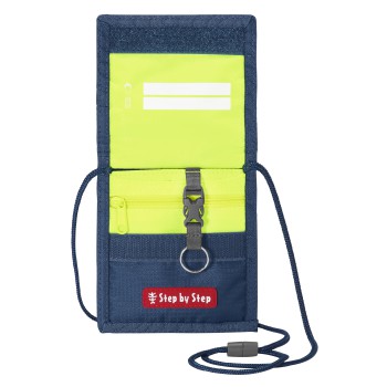 Step by Step Brustbeutel, perfekt für Geld und Busfahrkarte. – alles in einem Beutel: Fahrkarte, Geld, Schülerausweis, etc. – Brustbeutel mit Sicherheitsverschluss am Umhängeband – aufklappbare Flap mit Klettverschluss – innen viel Platz für Geldscheine, Kleingeld, Schlüssel etc. – mit Reißverschluss verschließbares Kleingeldfach – integrierte Befestigung für abnehmbaren Schlüsselring – Fensterfach für Fahrschein auf der Rückseite – Motiv passend zum jeweiligen Schulranzen-Design – die Textilien bestehen zu 100% aus recycelten PET-Flaschen – 100% PFC-freie und bluesign-zertifizierte Beschichtung