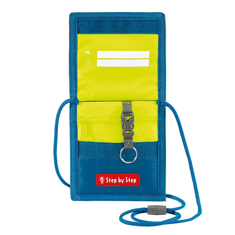 Step by Step Brustbeutel, perfekt für Geld und Busfahrkarte. – alles in einem Beutel: Fahrkarte, Geld, Schülerausweis, etc. – Brustbeutel mit Sicherheitsverschluss am Umhängeband – aufklappbare Flap mit Klettverschluss – innen viel Platz für Geldscheine, Kleingeld, Schlüssel etc. – mit Reißverschluss verschließbares Kleingeldfach – integrierte Befestigung für abnehmbaren Schlüsselring – Fensterfach für Fahrschein auf der Rückseite – Motiv passend zum jeweiligen Schulranzen-Design – die Textilien bestehen zu 100% aus recycelten PET-Flaschen – 100% PFC-freie und bluesign-zertifizierte Beschichtung