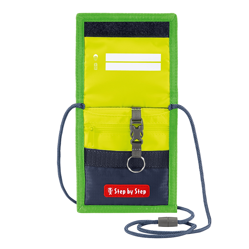 Step by Step Brustbeutel, perfekt für Geld und Busfahrkarte. – alles in einem Beutel: Fahrkarte, Geld, Schülerausweis, etc. – Brustbeutel mit Sicherheitsverschluss am Umhängeband – aufklappbare Flap mit Klettverschluss – innen viel Platz für Geldscheine, Kleingeld, Schlüssel etc. – mit Reißverschluss verschließbares Kleingeldfach – integrierte Befestigung für abnehmbaren Schlüsselring – Fensterfach für Fahrschein auf der Rückseite – Motiv passend zum jeweiligen Schulranzen-Design – die Textilien bestehen zu 100% aus recycelten PET-Flaschen – 100% PFC-freie und bluesign-zertifizierte Beschichtung