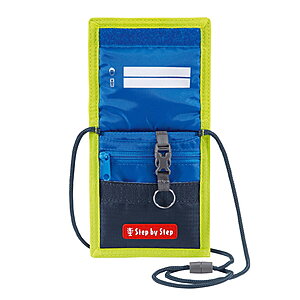Step by Step Brustbeutel, perfekt für Geld und Busfahrkarte. – alles in einem Beutel: Fahrkarte, Geld, Schülerausweis, etc. – Brustbeutel mit Sicherheitsverschluss am Umhängeband – aufklappbare Flap mit Klettverschluss – innen viel Platz für Geldscheine, Kleingeld, Schlüssel etc. – mit Reißverschluss verschließbares Kleingeldfach – integrierte Befestigung für abnehmbaren Schlüsselring – Fensterfach für Fahrschein auf der Rückseite – Motiv passend zum jeweiligen Schulranzen-Design – die Textilien bestehen zu 100% aus recycelten PET-Flaschen – 100% PFC-freie und bluesign-zertifizierte Beschichtung