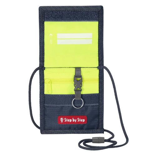 Step by Step Brustbeutel, perfekt für Geld und Busfahrkarte. – alles in einem Beutel: Fahrkarte, Geld, Schülerausweis, etc. – Brustbeutel mit Sicherheitsverschluss am Umhängeband – aufklappbare Flap mit Klettverschluss – innen viel Platz für Geldscheine, Kleingeld, Schlüssel etc. – mit Reißverschluss verschließbares Kleingeldfach – integrierte Befestigung für abnehmbaren Schlüsselring – Fensterfach für Fahrschein auf der Rückseite – Motiv passend zum jeweiligen Schulranzen-Design – die Textilien bestehen zu 100% aus recycelten PET-Flaschen – 100% PFC-freie und bluesign-zertifizierte Beschichtung