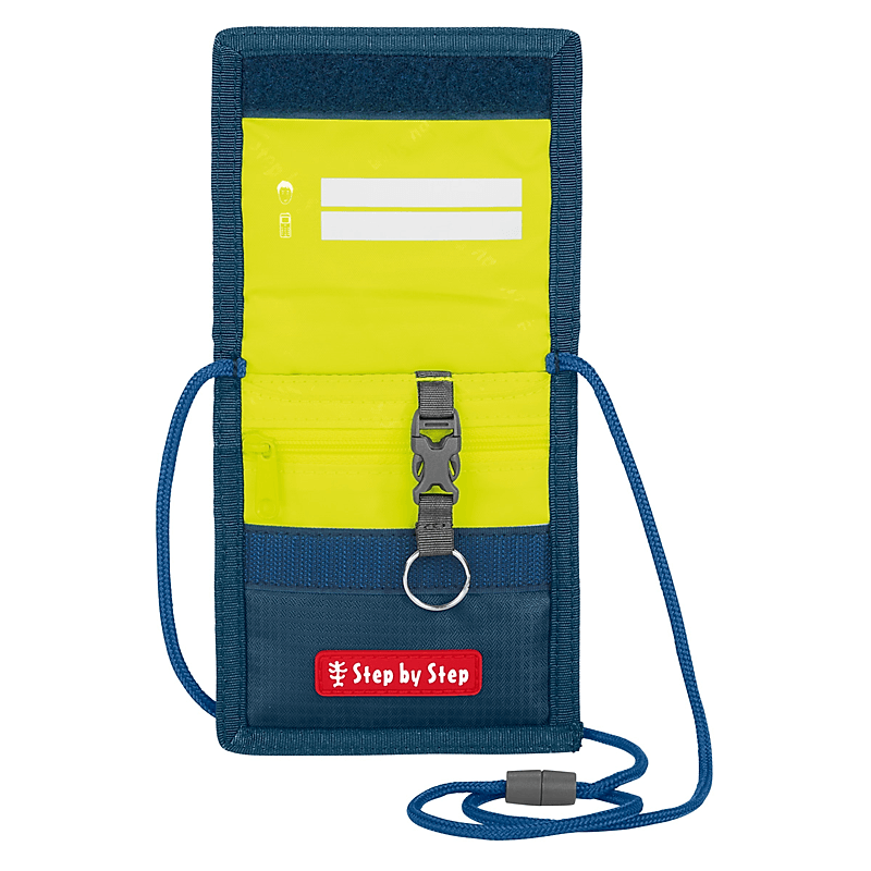 Step by Step Brustbeutel, perfekt für Geld und Busfahrkarte. – alles in einem Beutel: Fahrkarte, Geld, Schülerausweis, etc. – Brustbeutel mit Sicherheitsverschluss am Umhängeband – aufklappbare Flap mit Klettverschluss – innen viel Platz für Geldscheine, Kleingeld, Schlüssel etc. – mit Reißverschluss verschließbares Kleingeldfach – integrierte Befestigung für abnehmbaren Schlüsselring – Fensterfach für Fahrschein auf der Rückseite – Motiv passend zum jeweiligen Schulranzen-Design – die Textilien bestehen zu 100% aus recycelten PET-Flaschen – 100% PFC-freie und bluesign-zertifizierte Beschichtung