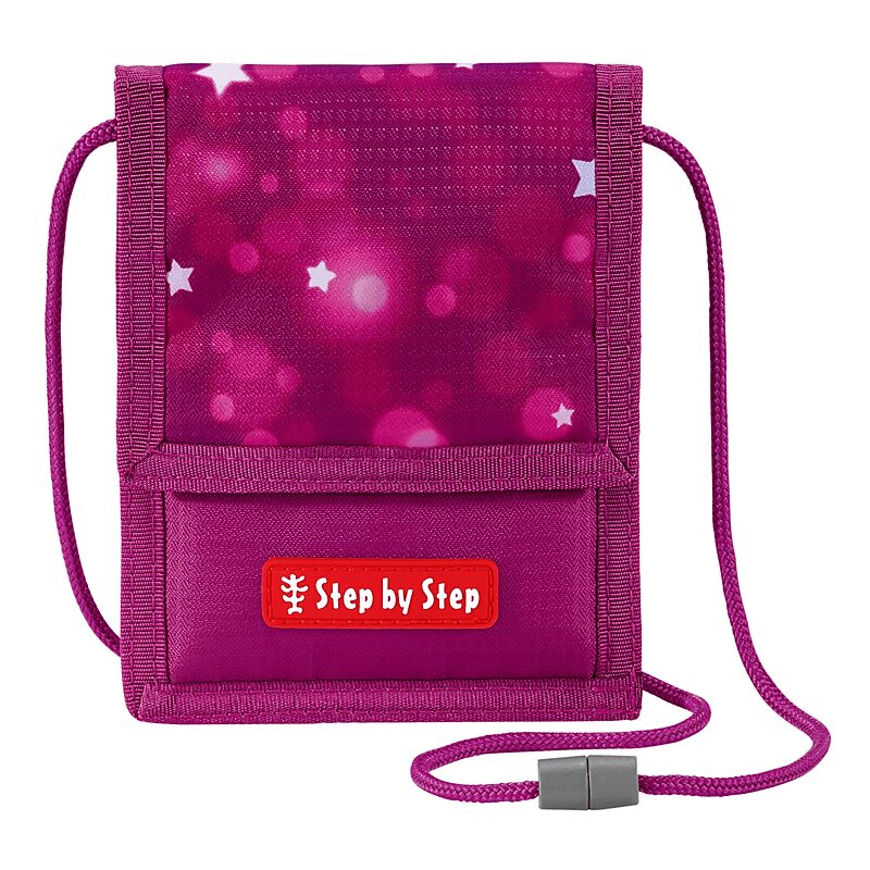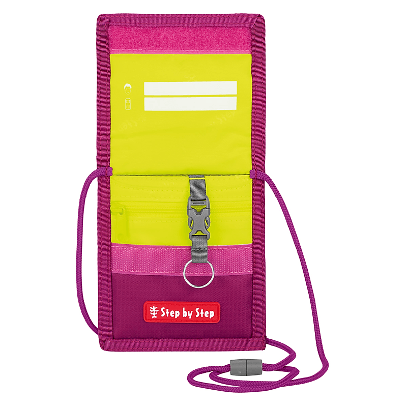 Step by Step Brustbeutel, perfekt für Geld und Busfahrkarte. – alles in einem Beutel: Fahrkarte, Geld, Schülerausweis, etc. – Brustbeutel mit Sicherheitsverschluss am Umhängeband – aufklappbare Flap mit Klettverschluss – innen viel Platz für Geldscheine, Kleingeld, Schlüssel etc. – mit Reißverschluss verschließbares Kleingeldfach – integrierte Befestigung für abnehmbaren Schlüsselring – Fensterfach für Fahrschein auf der Rückseite – Motiv passend zum jeweiligen Schulranzen-Design – die Textilien bestehen zu 100% aus recycelten PET-Flaschen – 100% PFC-freie und bluesign-zertifizierte Beschichtung