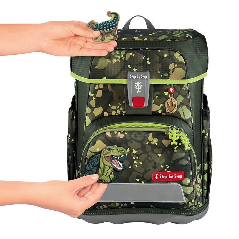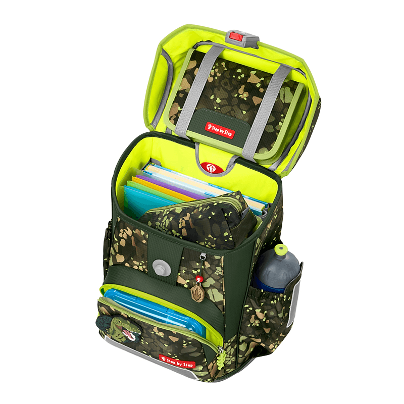 5-teiliges Set, bestehend aus Schulranzen, Federmäppchen (komplett bestückt), Schlamperetui, Sportbeutel und MAGIC MAGS.Das Leichtgeweicht für die Grundschule.Dank einer besonders leichten Hightech-Fieberglas-Konstruktion kommt der Cloud gerade einmal auf 900 Gramm ( Schulranzenkorpus ohne abnehmbare Elemente ).19 Liter Volumen sind in einem Hauptfach, einer Vordertasche und 2 Seitentaschen mit Auslaufösen aufgeteilt.Mit seinem geringen Gewicht ist der Cloud der perfekte Schulranzen für kleine und zierliche Kinder von 100 cm bis 150 cm.