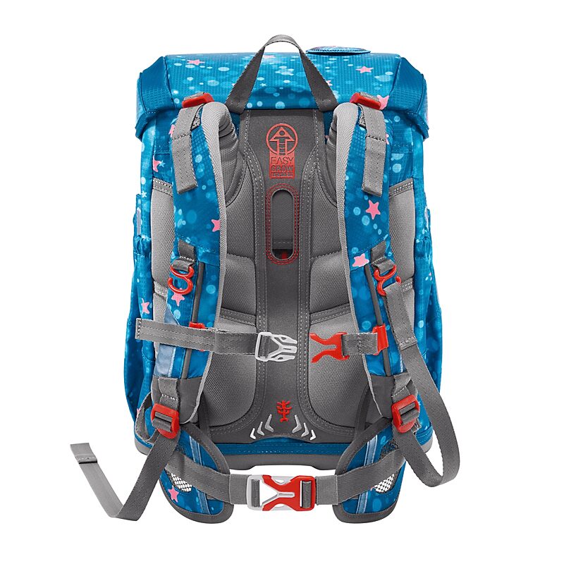 5-teiliges Set, bestehend aus Schulranzen, Federmäppchen (komplett bestückt), Schlamperetui, Sportbeutel und MAGIC MAGS.Das Leichtgeweicht für die Grundschule.Dank einer besonders leichten Hightech-Fieberglas-Konstruktion kommt der Cloud gerade einmal auf 900 Gramm ( Schulranzenkorpus ohne abnehmbare Elemente ).19 Liter Volumen sind in einem Hauptfach, einer Vordertasche und 2 Seitentaschen mit Auslaufösen aufgeteilt.Mit seinem geringen Gewicht ist der Cloud der perfekte Schulranzen für kleine und zierliche Kinder von 100 cm bis 150 cm.