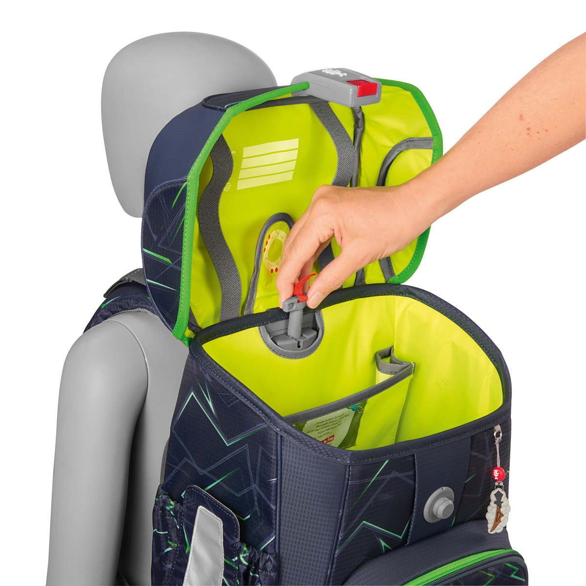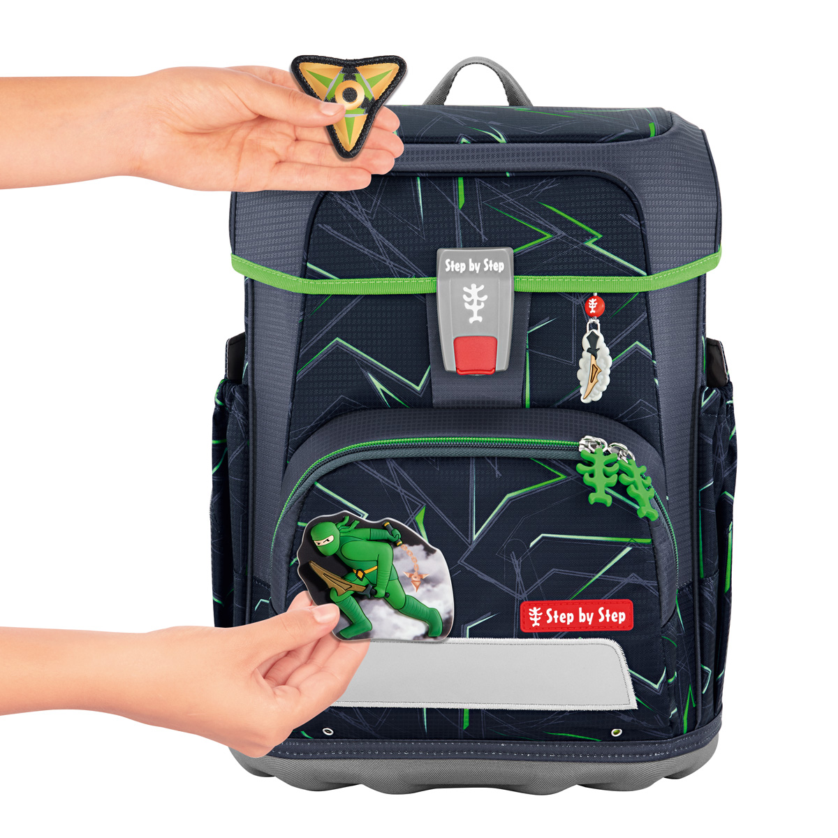 Schulranzen: – der leichte Schulranzen nur ca. 990 g – wechselbare Motive, MAGIC MAGS – EASY GROW SYSTEM: Schulranzen wächst von der 1. bis zur 4. Klasse mit – ultraleichte, elastische Fiberglas-Rückenkonstruktion und ergonomisch geschwungene, atmungsaktive Rückenpartie – verstellbare und ergonomische Schultergurte – Lageverstellriemen zur körpernahen Schulranzen-Positionierung – abnehmbarer, höhenverstellbarer Brustgurt – Gurtenden-Einhängung – gepolsterte, abnehmbare Hüftflosse – isolierte, nach außen wachsende Fronttasche mit Auslaufösen – zwei offene, nach außen wachsende Seitentaschen mit Auslaufösen – Aufhängeschlaufe – Fidlock-Magnetverschluss – Hauptfach mit Bücherfach – Laschen zur Aufbewahrung des Federmäppchens im Deckel – wasserdichte Bodenplatte – reflektierende Elemente sorgen für Sicherheit im Straßenverkehr und bei Dunkelheit – strapazierfähiges und wasserabweisendes Material mit 100% PFC-freier Beschichtung – die Textilien bestehen zu 100% aus recycelten PET-Flaschen – klimaneutral ausgeglichen sowie sozial verträglich (Fair Wear Foundation) und verantwortungsvoll produziert (bluesign-Systempartner)Verbraucherhinweis: Die Bestandteile des MAGIC MAGS-Zubehörs lassen sich beliebig oft von den entsprechenden Flächen des Schulranzens abnehmen und durch andere MAGIC MAGS ersetzen. Diese sind in 3er-Sets separat erhältlich. Für eine neutrale Gestaltung des Ranzens können die MAGIC MAGS einfach komplett weglassen werden, ohne dass störende Klettflächen entstehen. So wird jeder Schulranzen zum Unikat.Das Gewicht des Schulranzen-Korpus ohne abnehmbare Elemente beträgt ca. 990 g. Das Gesamtgewicht des Schulranzens mit allen abnehmbaren Elementen beträgt ca. 1750 g.