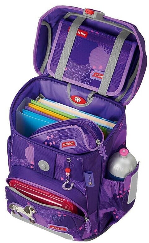 5-teiliges Set, bestehend aus Schulranzen, Federmäppchen (komplett bestückt), Schlamperetui, Sportbeutel und MAGIC MAGS.Das Leichtgeweicht für die Grundschule.Dank einer besonders leichten Hightech-Fieberglas-Konstruktion kommt der Cloud gerade einmal auf 900 Gramm ( Schulranzenkorpus ohne abnehmbare Elemente ).19 Liter Volumen sind in einem Hauptfach, einer Vordertasche und 2 Seitentaschen mit Auslaufösen aufgeteilt.Mit seinem geringen Gewicht ist der Cloud der perfekte Schulranzen für kleine und zierliche Kinder von 100 cm bis 150 cm.
