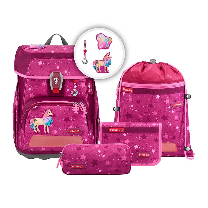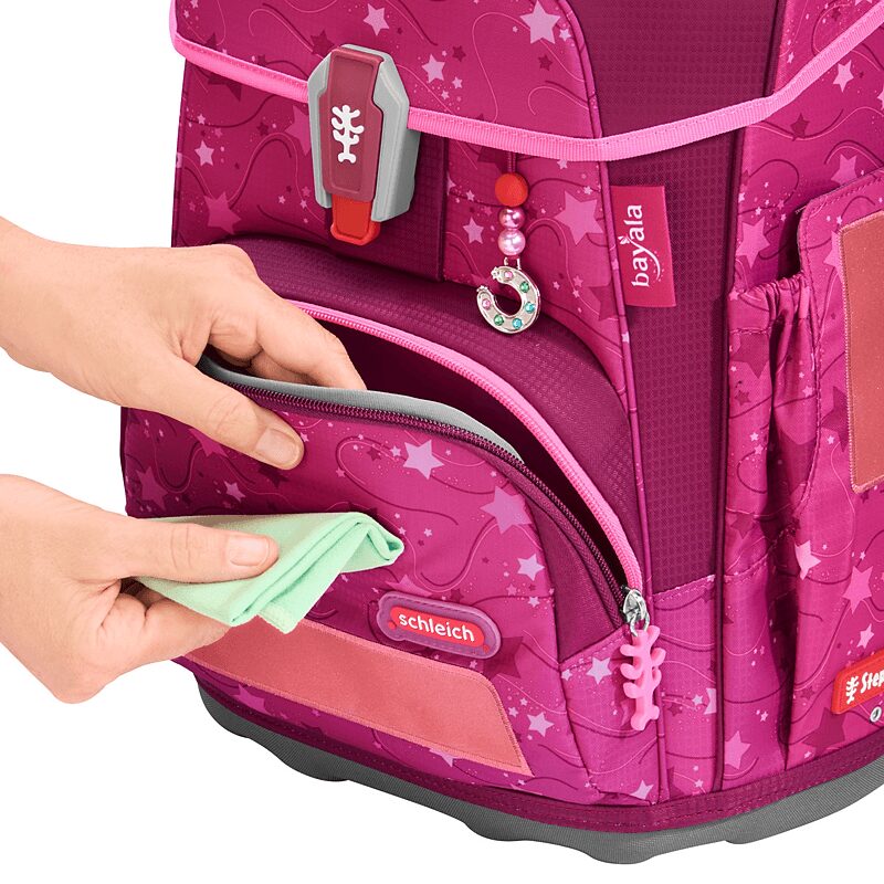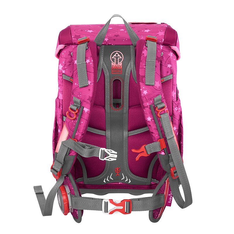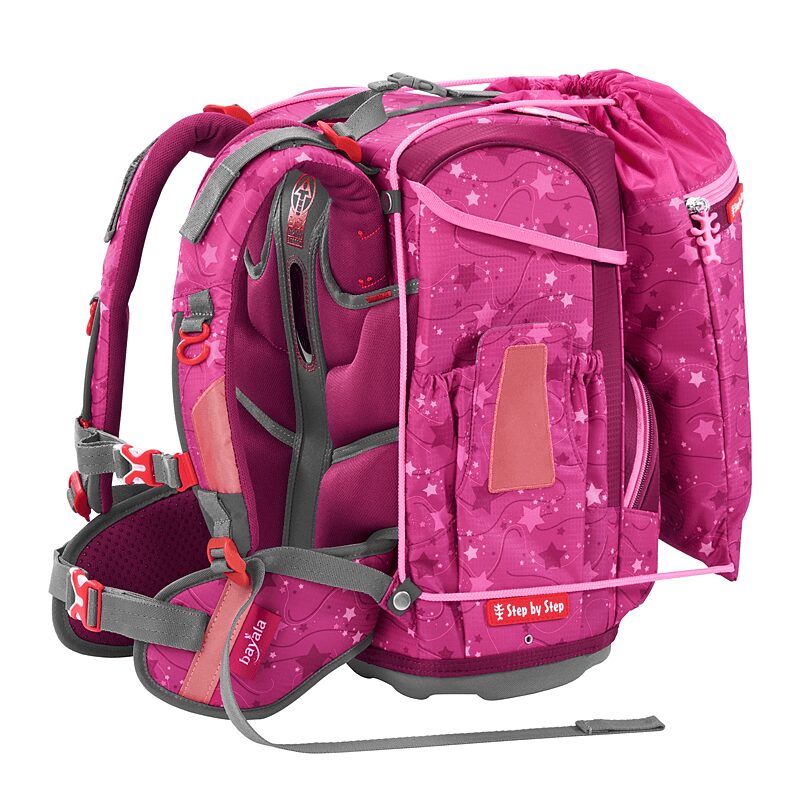 5-teiliges Set, bestehend aus Schulranzen, Federmäppchen (komplett bestückt), Schlamperetui, Sportbeutel und MAGIC MAGS.Das Leichtgeweicht für die Grundschule.Dank einer besonders leichten Hightech-Fieberglas-Konstruktion kommt der Cloud gerade einmal auf 900 Gramm ( Schulranzenkorpus ohne abnehmbare Elemente ).19 Liter Volumen sind in einem Hauptfach, einer Vordertasche und 2 Seitentaschen mit Auslaufösen aufgeteilt.Mit seinem geringen Gewicht ist der Cloud der perfekte Schulranzen für kleine und zierliche Kinder von 100 cm bis 150 cm.