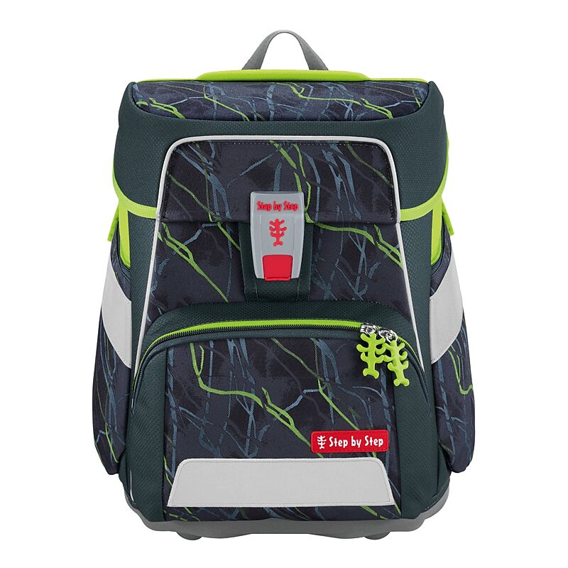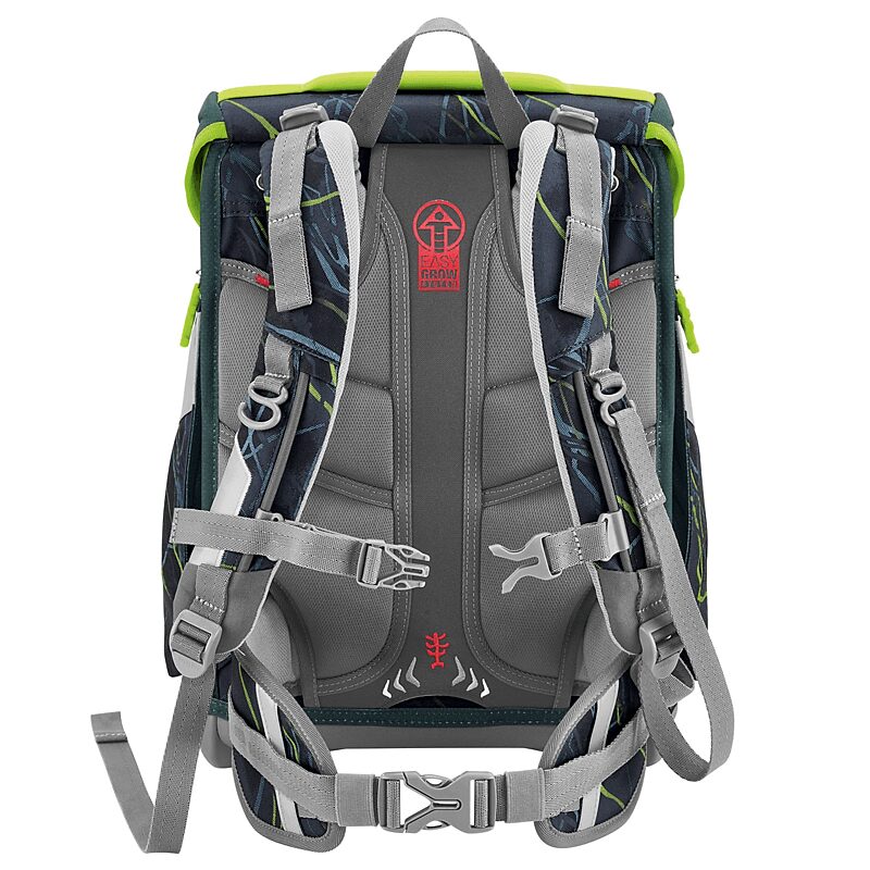 5- teiliges Schulranzen-Set bestehend aus:– Schulranzen – Federmäppchen, komplett bestückt – Schlamperetui – Turnbeutel – MAGIC MAGS (2 Applikationen und 1 Anhänger) Schulranzen: – der geräumige Schulranzen – wechselbare Motive, MAGIC MAGS – EASY GROW SYSTEM: Schulranzen wächst von der 1. bis zur 4. Klasse mit – ultraleichte, elastische Fiberglas-Rückenkonstruktion und ergonomisch geschwungene, atmungsaktive Rückenpartie – verstellbare und ergonomische Schultergurte – Lageverstellriemen zur körpernahen Schulranzen-Positionierung – abnehmbarer, höhenverstellbarer Brustgurt – Gurtenden-Einhängung – gepolsterte, abnehmbare Hüftflosse – seitlich nach außen wachsende Reißverschluss- und Fronttasche mit Auslaufösen – Aufhängeschlaufe und gepolsterter Tragegriff – Fidlock-Magnetverschluss – Hauptfach mit Bücherfach – Laschen zur Aufbewahrung des Federmäppchens im Deckel – wasserdichte Bodenplatte – reflektierende Elemente sorgen für Sicherheit im Straßenverkehr und bei Dunkelheit – strapazierfähiges und wasserabweisendes Material mit 100% PFC-freier Beschichtung – die Textilien bestehen zu 100% aus recycelten PET-Flaschen – klimaneutral ausgeglichen sowie sozial verträglich (Fair Wear Foundation) und verantwortungsvoll produziert (bluesign-Systempartner)Verbraucherhinweis: Die Bestandteile des MAGIC MAGS-Zubehörs lassen sich beliebig oft von den entsprechenden Flächen des Schulranzens abnehmen und durch andere MAGIC MAGS ersetzen. Diese sind in 3er-Sets separat erhältlich. Für eine neutrale Gestaltung des Ranzens können die MAGIC MAGS einfach komplett weglassen werden, ohne dass störende Klettflächen entstehen. So wird jeder Schulranzen zum Unikat.Das Gewicht des Schulranzen-Korpus ohne abnehmbare Elemente beträgt ca. 1250 g.Das Gesamtgewicht des Schulranzens mit allen abnehmbaren Elementen beträgt ca. 2050 g.