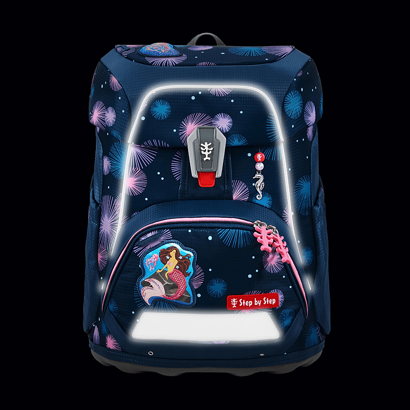 FITDer schmale Schulranzen 5-teiliges Set, bestehend aus Schulranzen, Federmäppchen (komplett bestückt), Schlamperetui, Sportbeutel und MAGIC MAGSSchmal geschnitten, groß in Funktion – der schlanke Begleiter für kleine SchulternSchmale Schulranzen bieten für zierliche Kinder gleich mehrere Vorteile: Sie sind leichter und passen sich besser an die schmalen Schultern an, wodurch das Gewicht ergonomisch verteilt wird. Trotz der schlanken Form des FIT fasst er 19 Liter und ist somit der perfekte Begleiter von der 1. bis zur 4. Klasse. Dies wird durch das EASY GROW SYSTEM gewährleistet, durch welches der Schulranzen höhenverstellbar wird und sich an die jeweilige Größe Deines Kindes anpassen lässt. Die wechselbaren Motive sorgen dafür, dass der Schulranzen Deinem Kind über die gesamte Grundschulzeit hinweg gefällt.Der Fit zeichnet sich aus durch seine praktische rucksackähnliche Form mit dem geringen Gewicht von gerade mal 900 g. Durch seinen schlanken Schnitt ist der Schulranzen ideal für kleine und zierliche Kinder und somit perfekt für kleine Schultern. Durch seine 19 Liter Volumen passen Schulbücher, Brotdose und Trinkflasche(n)  perfekt in das Hauptfach, die Seitentaschen ( mit Auslaufösen ) und die Fronttasche ( mit Auslaufösen ).Mit dem  Easy-Grow-System lässt sich die Höhe der Schultergurte sowie die Rückenlänge des Schulranzens perfekt auf die Länge des Kinderrückens einstellen – von 100 cm bis 150 cm Körpergröße.Die in der Länge justierbaren und gepolsterten Schultergurte sorgen für eine kompfortable und richtige Position des Schulranzens.Durch den höhenverstellbaren Brustgurt und den Hüftgurt ( abnehmbar und mit zusätzlichen kleinen Reißverschlussfach ), wird das Gewicht des Schulranzens und dessen Inhalt gleichmäßig auf den ganzen Körper verteilt.Das ergonomisch vorgeformte Rückenpolster aus atmungsaktiven Material ermöglicht einen bequemen Sitz, ohne dabei zu schwitzen und entlastet den Körper in jeder Wachstumsphase.Reflektierende Elemente befinden sich über den ganzen Ranzen verteilt und sorgen für bessere Sichtbarkeit im Dunkeln.Die Magic Mags machen den Schulranzen bunt und individuell. Die wechselbaren Motive und Anhänger lassen sich schnell und einfach austauschen.Der Step by Step Fit besitzt zusätzliche Schlaufen wo sich die Happy Charms oder ander Anhänger befestigen lasssen.Ein intergriertes und unauffälliges Fach in der Seitentasche bietet Platz für einen AIRTAG für mehr Sicherheit und eine gutes Gefühl im Alltag.Lieferumfang1 Schulranzen 1 Federmäppchen, komplett bestückt mit Markenstiften 7 Jumbo-Markenstifte 12 Farb-Markenstifte 1 Bleistift 1 Step by Step Lineal 1 Step by Step Geodreieck 1 Step by Step Doppelspitzer 1 Radiergummi 1 Schlampermäppchen 1 Turnbeutel 1 Set MAGIC MAGS (2 Applikationen und 1 Anhänger)ProduktdetailsEmpfohlene Anwendung:   Grundschule Kollektion:                     2026Technische DetailsFächeranzahl:                   5 Pflegehinweise:Nur feuchter Lappen, keine Reinigungsmittel Schmutzige Stellen mit einem feuchten Tuch reinigen Direkte Wasserreinigung vermeiden, nicht Wasch-/Spülmaschinen geeignet.Gewicht Schulranzenkorpus:                                      990 g Gewicht Schulranzen mit abnehmbaren Elementen:          1750 gMaterialeigenschaften   WasserabweisendMaterial:                                                       Polyester Größe (BxHxT):                                          28 cm x 37.5 cm x 20 cmVolumen Seitentaschen:                                  2 l Volumen Fronttasche:                                            1.5 l Sicherheit:                                                     Reflektierende Flächen