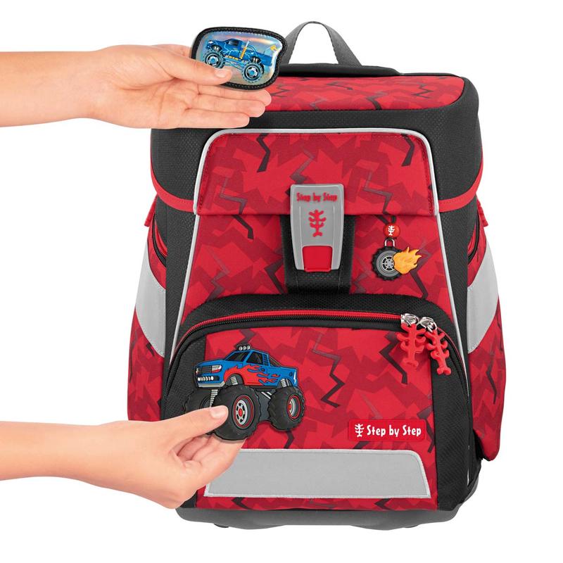 5- teiliges Schulranzen-Set bestehend aus:– Schulranzen – Federmäppchen, komplett bestückt – Schlamperetui – Turnbeutel – MAGIC MAGS (2 Applikationen und 1 Anhänger) Schulranzen: – der geräumige Schulranzen – wechselbare Motive, MAGIC MAGS – EASY GROW SYSTEM: Schulranzen wächst von der 1. bis zur 4. Klasse mit – ultraleichte, elastische Fiberglas-Rückenkonstruktion und ergonomisch geschwungene, atmungsaktive Rückenpartie – verstellbare und ergonomische Schultergurte – Lageverstellriemen zur körpernahen Schulranzen-Positionierung – abnehmbarer, höhenverstellbarer Brustgurt – Gurtenden-Einhängung – gepolsterte, abnehmbare Hüftflosse – seitlich nach außen wachsende Reißverschluss- und Fronttasche mit Auslaufösen – Aufhängeschlaufe und gepolsterter Tragegriff – Fidlock-Magnetverschluss – Hauptfach mit Bücherfach – Laschen zur Aufbewahrung des Federmäppchens im Deckel – wasserdichte Bodenplatte – reflektierende Elemente sorgen für Sicherheit im Straßenverkehr und bei Dunkelheit – strapazierfähiges und wasserabweisendes Material mit 100% PFC-freier Beschichtung – die Textilien bestehen zu 100% aus recycelten PET-Flaschen – klimaneutral ausgeglichen sowie sozial verträglich (Fair Wear Foundation) und verantwortungsvoll produziert (bluesign-Systempartner)Verbraucherhinweis: Die Bestandteile des MAGIC MAGS-Zubehörs lassen sich beliebig oft von den entsprechenden Flächen des Schulranzens abnehmen und durch andere MAGIC MAGS ersetzen. Diese sind in 3er-Sets separat erhältlich. Für eine neutrale Gestaltung des Ranzens können die MAGIC MAGS einfach komplett weglassen werden, ohne dass störende Klettflächen entstehen. So wird jeder Schulranzen zum Unikat.Das Gewicht des Schulranzen-Korpus ohne abnehmbare Elemente beträgt ca. 1250 g.Das Gesamtgewicht des Schulranzens mit allen abnehmbaren Elementen beträgt ca. 2050 g.