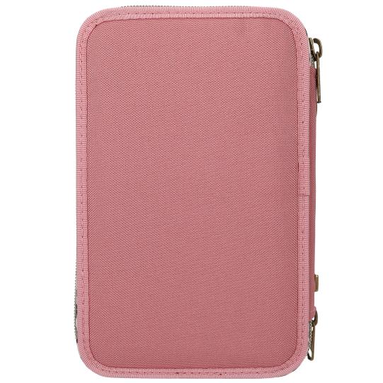 - rosafarbene TOPModel-Federtasche mit applizierten Schleifen